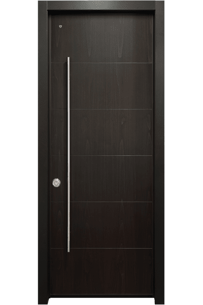 עיצוב הדלת: דגם מרטיניק בציפוי פורניר, פולימר או פורמייקה איכותית בגוונים שונים לבחירה (מומלץ להתקנה במקום מקורה ללא חשיפה לתנאי מזג אוויר חיצוניים).