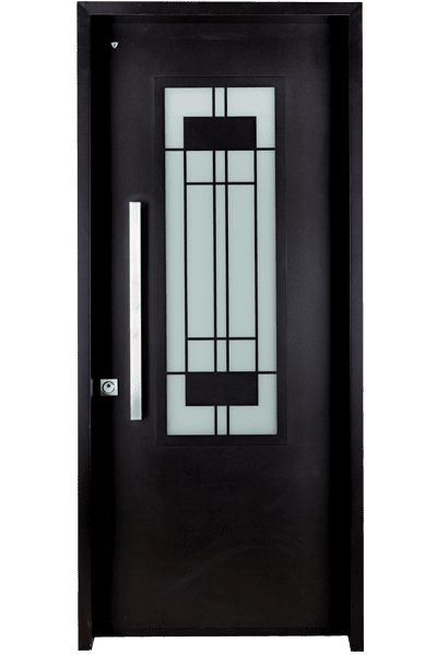עיצוב הדלת: דגם אנדרומדה בעלת זכוכית טריפלקס וסורג דקורטיבי חיצוני