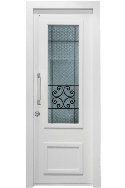 עיצוב הדלת: דגם גאיה בעל זכוכית בידודית כפולה וסורג פנימי קיימת אופציה לשלב זכוכית "סבתא"