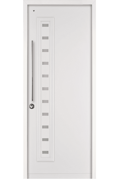 דלת כניסה מדגם זה מיוצרת במידות שונות ככנף בודדת, כנף וחצי או כנף כפולה.