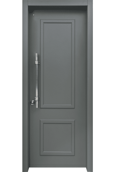 דלת כניסה מדגם זה מיוצרת במידות שונות ככנף בודדת, כנף וחצי או כנף כפולה.