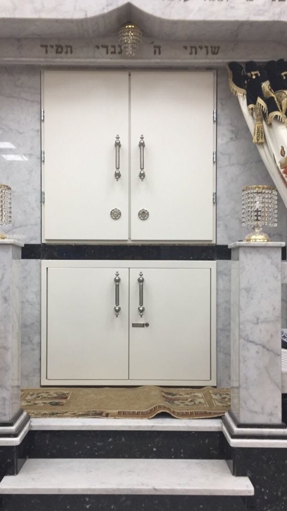 ארון פח לסגירת נישה בגוון 9001 שמנת חלק תחתון בשילוב דלת פלדלת לספרי תורה חלק עליון בגוון ובמראה מותאם
